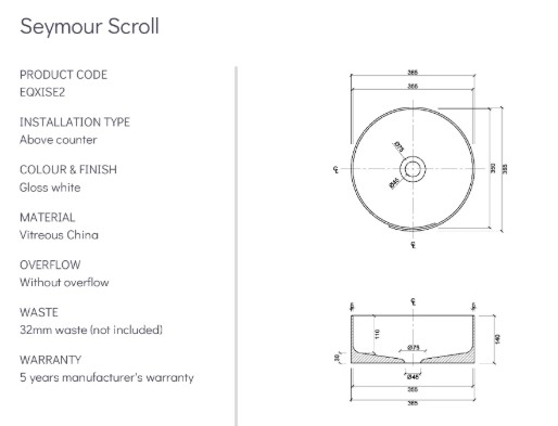 Eight Quarters Seymour Scroll Basin. For more information contact the Sink and Bathroom Shop Brisbane.